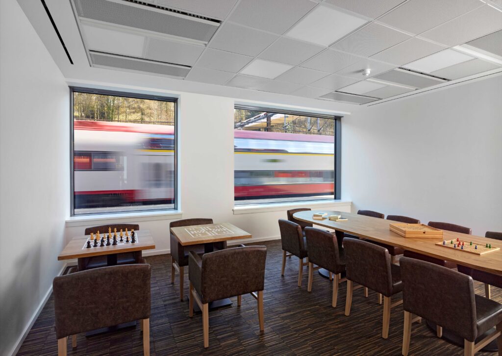 - 4 Tagungsräume, darunter 1 Gemeinschaftsraum mit Lese- und Spielecke.