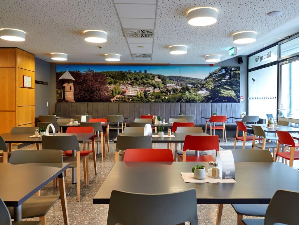 Unser Restaurant ist in zwei Bereiche aufgeteilt. Das Gruppenrestaurant verfügt über 80 Plätze und das Restaurant für Einzelgäste über 73 Plätze. Unser Küchenteam bietet abwechslungsreiche Tagesmenüs sowie Gerichte à la carte, auch vegetarisch. Weitere Angebote für Gruppen sind Grillabende, Buffets, Gruppenmenüs und Kaffeepausen.