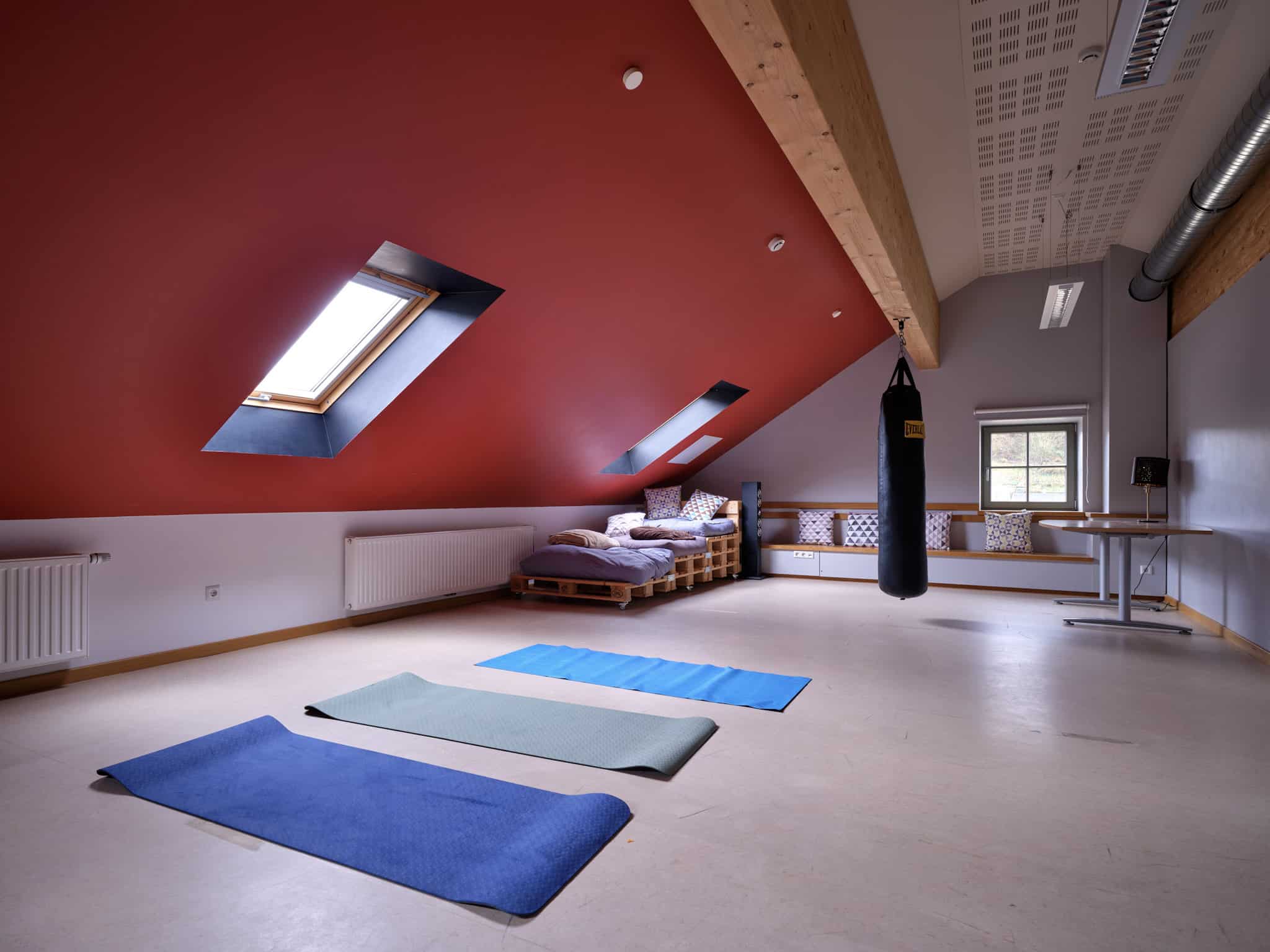 Ein großer Mehrzweckraum im dritten Stock kann ganz nach den Wünschen der Jugendlichen eingerichtet werden. Er wird hauptsächlich für sportliche Aktivitäten wie Yoga, Tanz, Tischtennis oder Boxsacktraining genutzt, kann aber auch für verschiedene Workshops, Besprechungen und ähnliche Aktivitäten genutzt werden.