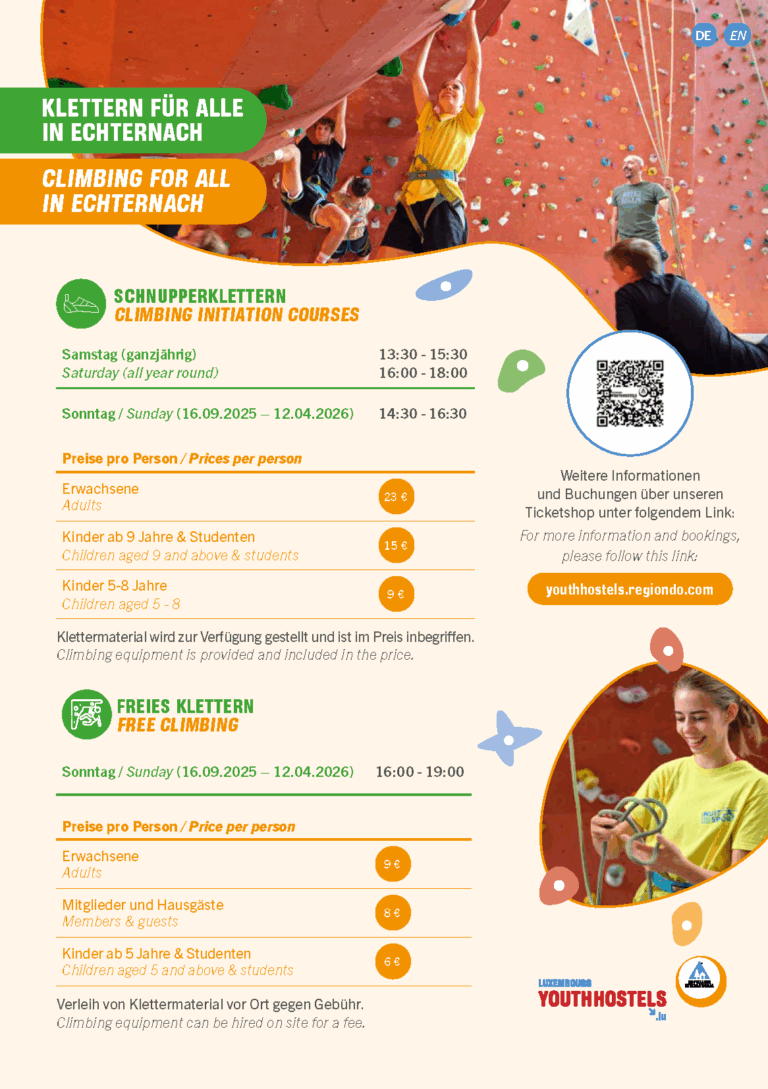 Informationen zur Kletterhalle der Jugendherberge Echternach.