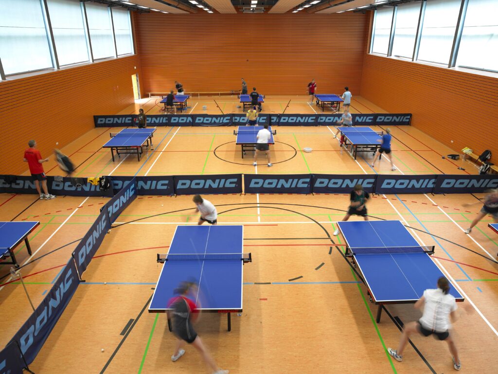 Die moderne Sporthalle in Echternach bietet ideale Bedingungen für verschiedene Sportarten und Trainings.